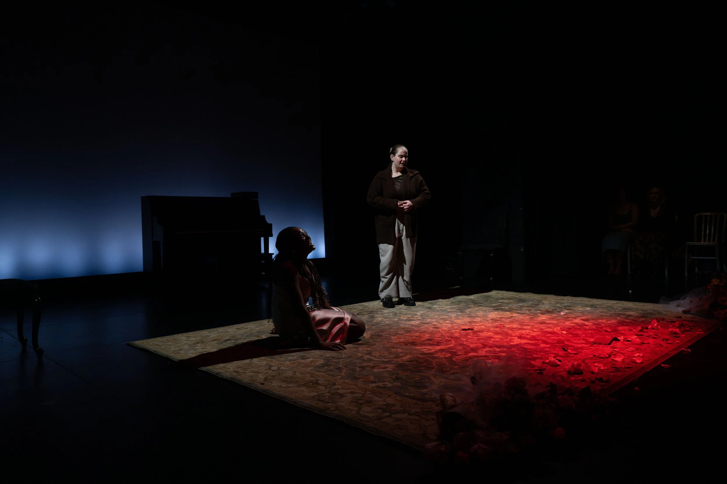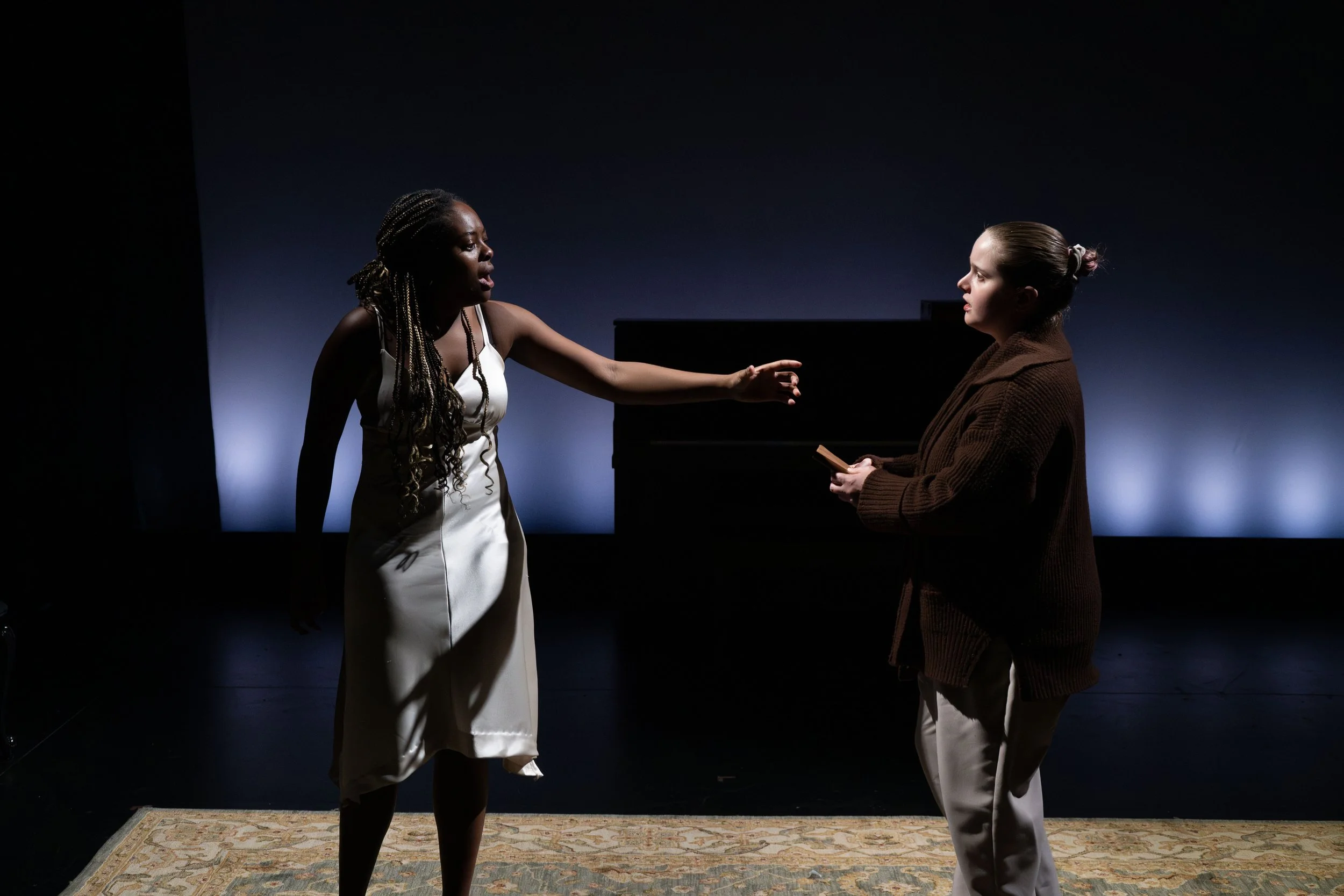 When I was five, I sat on Santa's lap and asked for world peace on Christmas, which is pretty funny for a Jewish only child. Two decades later, I have yet to see my wish fulfilled in the literal sense, except for these sublime moments when I witness art magically heal people in the moment. I felt it when I debuted my poem, Fleeting Friends and Feelings, dedicated to the friends I’ve lost to mental illness at the La Mamma Galleria Helen Lavelle exhibit. I felt it when I sang and played My Body Is My Buddy on my ukulele at an LGBTQIA+ Pride Parade event. I felt it when performing as the Registrar and Jailor in Simon Stephens’ timely play The Trial of Ubu at Atlantic’s Stage 2 Theater. And I certainly felt it in May 2025 when I graduated from NYU Tisch and The Atlantic Acting School. I treasure the privilege of gaining ardor, rigor, and ease in my training and daily practice. And I couldn’t have done it without the guidance of my professors, coaches, and peers. Production Photos